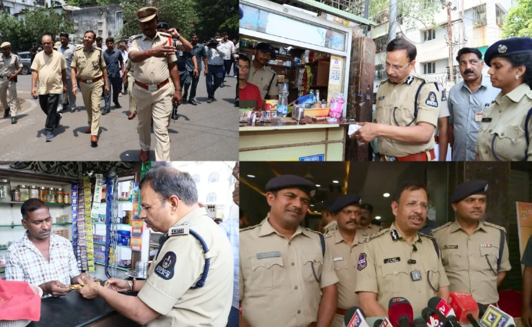 Under the leadership of Police Commissioner V.C. Sajjanar, IPS, around 5,000 police personnel carried out simultaneous raids on 558 shops selling tobacco products near educational institutions across the city. Task Force teams, Special Teams, H-Nu wing, reserve forces, and law and order police participated in the coordinated operation, inspecting violations and initiating legal action against offenders.