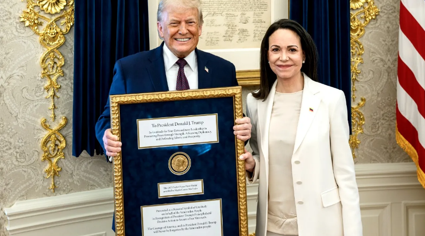Machado received the 2025 Nobel Peace Prize for her sustained struggle to secure democratic rights for the Venezuelan people and for her efforts to lead the country away from authoritarian rule. At the time of the award announcement, she dedicated the honor to the people of Venezuela and acknowledged Trump’s support.