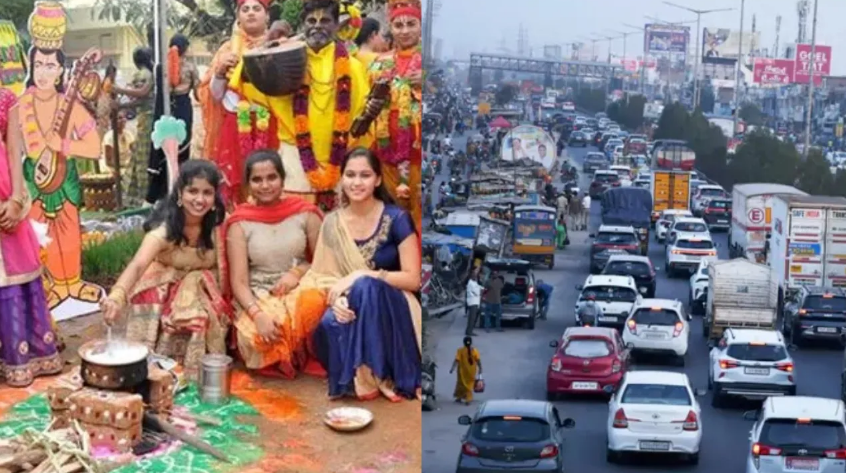Major roads and highways connecting Hyderabad to villages in Telangana and Andhra Pradesh, including the Hyderabad–Vijayawada National Highway (NH-65), are heavily congested, with traffic bottlenecks reported at key points such as the Pantangi Toll Gate. Private vehicles joining the exodus have further added to the traffic woes, turning roads into crowded thoroughfares. Authorities have advised commuters to plan their journeys carefully and allow extra time for travel.