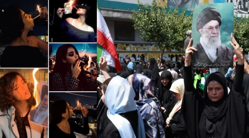 #WATCH | An Iranian girl burns a picture of Ayatollah Khamenei and lights her cigarette, a new trend in Iran! Young Iranian women are leading the revolution.